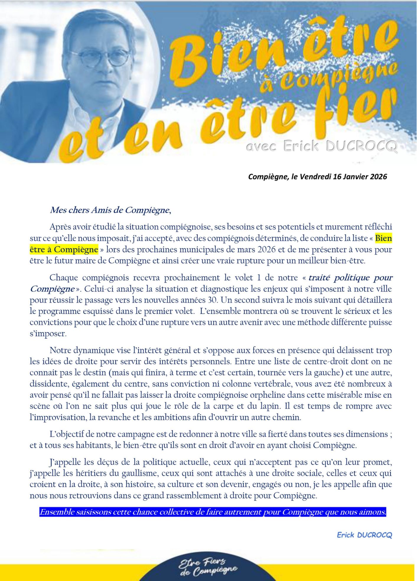 Communiqué aux Compiégnois - Candidature